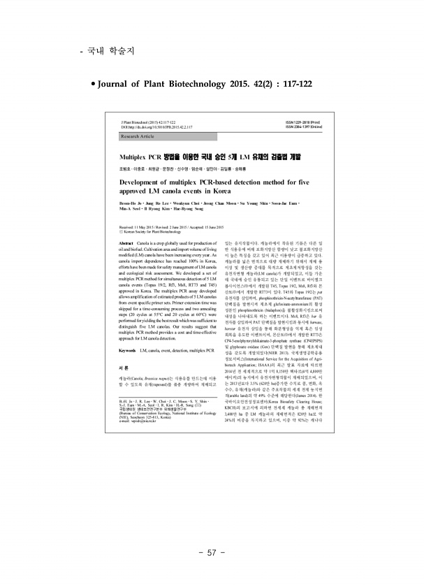 국내 학술지 ?Journal of Plant Biotechnology 2015. 42 2 117-122