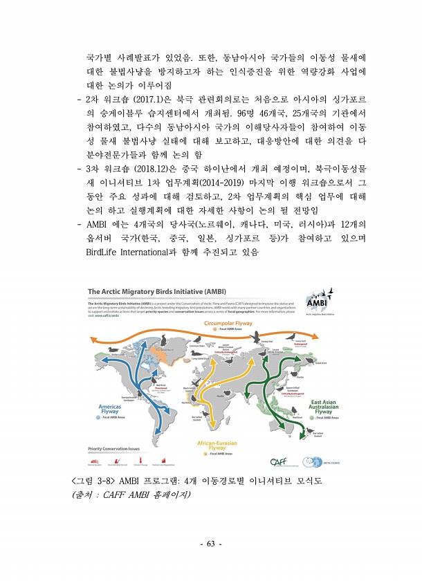 63 국가별 사례발표가 있었음. 또한, 동남아시아 국가들의 이동성 물새에 대한 불법사냥을 방지하고자 하는 인식증진을 위한 역량강화 사업에 대한 논의가 이루어짐 2차 워크숍 2017.1 은 북극 관련회의로는 처음으로 아시아의 싱가포르 의 숭게이블루 습지센터에서 개최됨. 96명 46개국, 25개국의 기관에서 참여하였고, 다수의 동남아시아 국가의 이해당사자들이 참여하여 이동 성 물새 불법사냥 실태에 대해 보고하고, 대응방안에 대한 의견을 다 분야전문가들과 함께 논의 함 3차 워크숍 2018.12 은 중국 하이난에서 개최 예정이며, 북극이동성물 새 이니셔티브 1차 업무계획 2014-2019 마지막 이행 워크숍으로서 그 동안 주요 성과에 대해 검토하고, 2차 업무계획의 핵심 업무에 대해 논의 하고 실행계획에 대한 자...