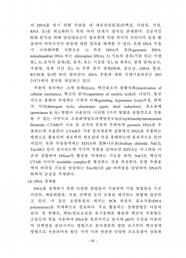 51 DNA , , , RNA PCR DNA 1 DNA genomic DNA, mitochondrial DNA chloroplast DNA , 2 , 3 , , , 4 , , , 5 PCR, , cDNA , RT-PCR DNA ISO 21571 lysis , inactivation of cellular nucleases , separation of nucleic acid grinding, hypotomic lysis , detergent lysis, chaotropic agent, thiol reduction , proteinase K 3 Cetyltrimethylammonium Bromide; CTAB genomic DNA CTAB DNA EDTA Sodium chloride, NaCl , Tris/HCl...