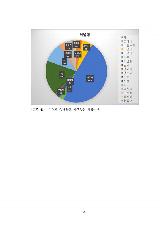 58 그림 41 터널형 생태통로 야생동물이용비율