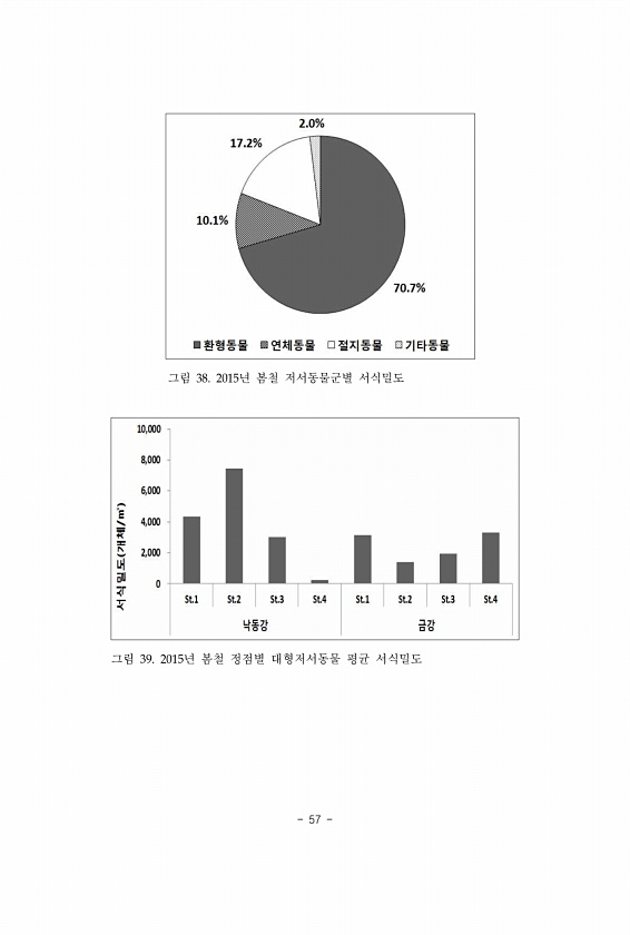 57 그림 38. 2015년 봄철 저서동물군별 서식밀도 그림 39. 2015년 봄철 정점별 대형저서동물 평균서식밀도