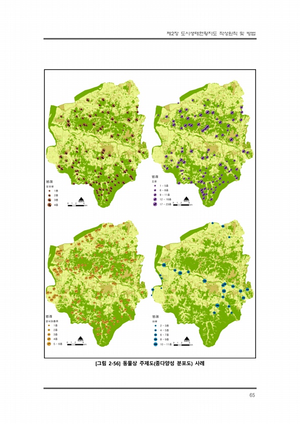 제2장 도시생태현황지도 작성원칙 및 방법 65 [그림 2-56] 동물상 주제도 종다양성 분포도사례