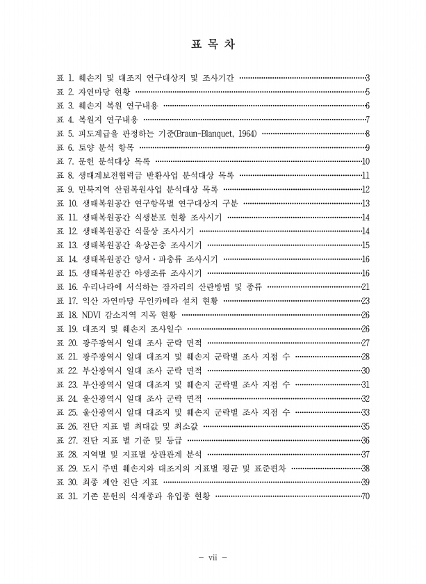 제목 : 생태계 훼손지 및 복원지의 진단 평가와 회복력 증진 방안