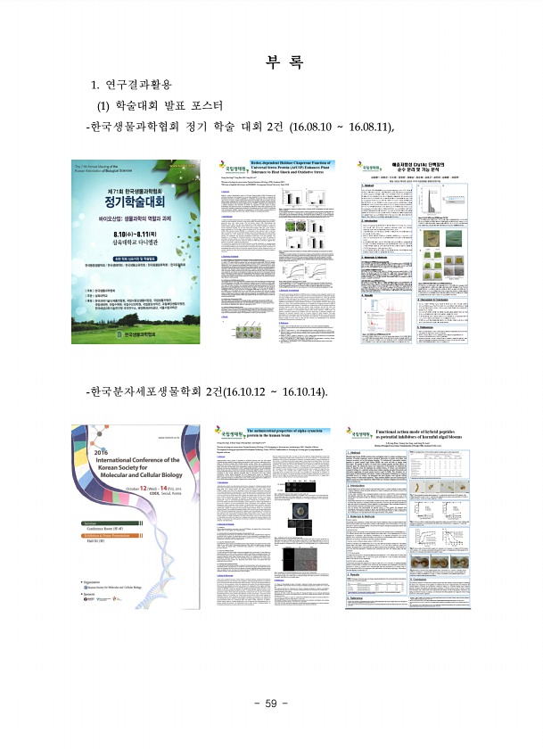 부 록 1. 연구결과활용 1 학술대회 발표 포스터 -한국생물과학협회 정기 학술 대회 2건 16.08.10 16.08.11 , -한국분자세포생물학회 2건 16.10.12 16.10.14