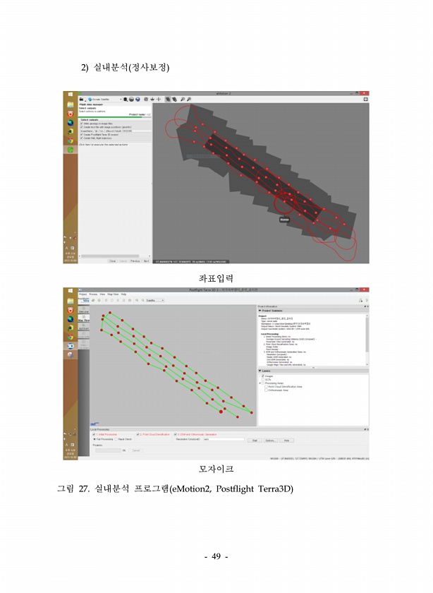 49 2 실내분석 정사보정 좌표입력 모자이크 그림 27. 실내분석 프로그램 eMotion2, Postflight Terra3D