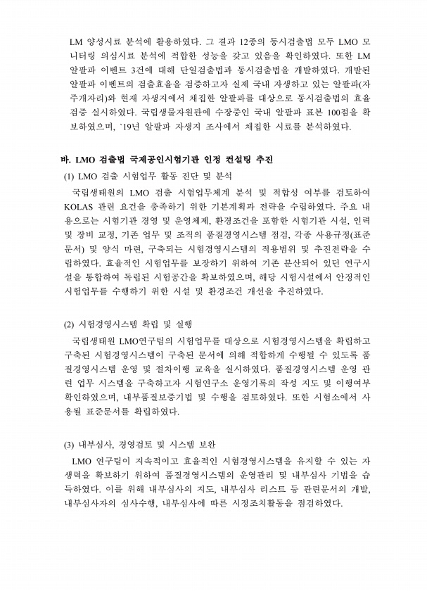 제목 : (2019) 자연생태계 내 유전자변형생물체 선별기술 개발