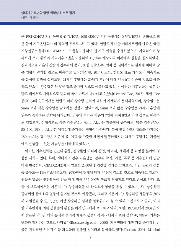 제목 : 생태계 기후변화 영향·취약성·리스크평가 : 연구사례분석