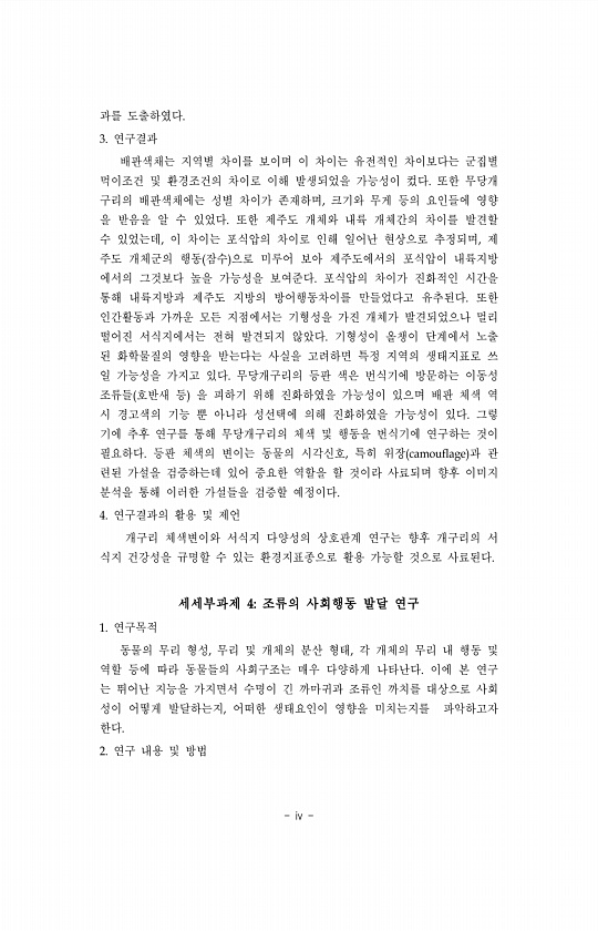 제목 : 사회성 동물의 행동생태 연구. Ⅰ