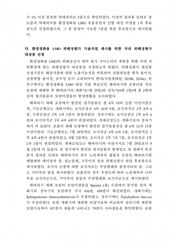 제목 : (2018) 해충저항성 LMO의 환경위해성 연구