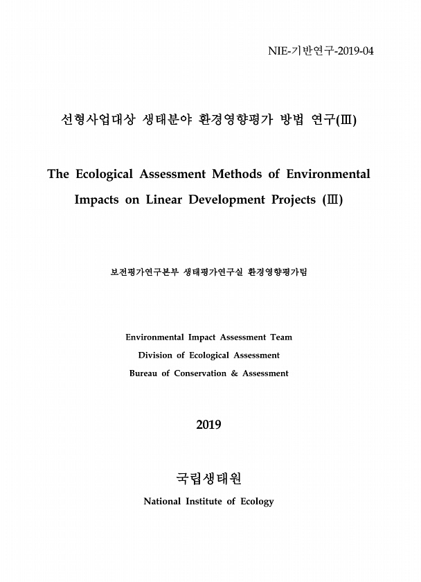제목 : (2019) 선형사업대상 생태분야 환경영향평가 방법 연구. Ⅲ