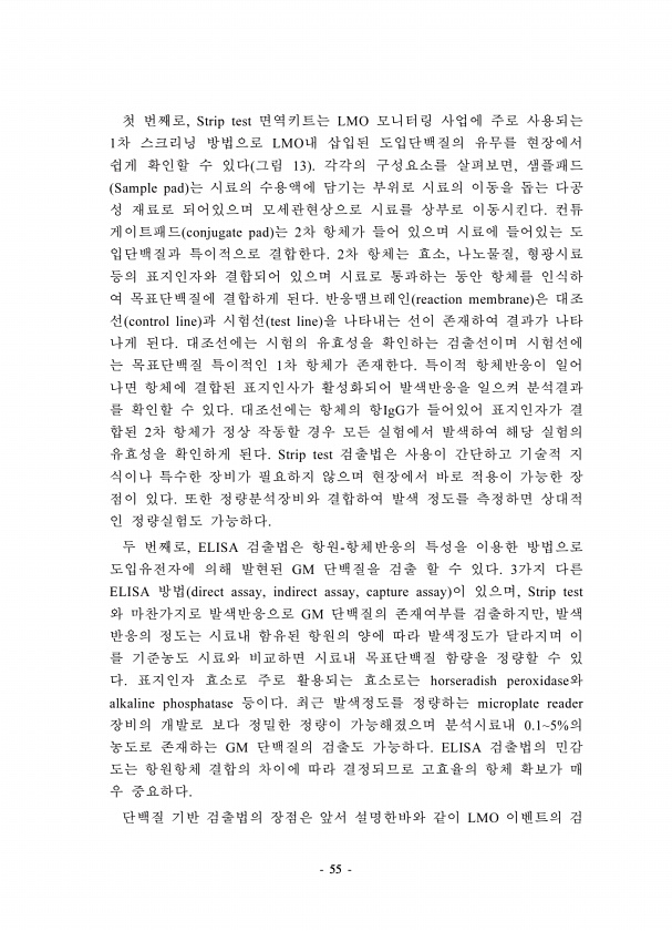 55 , Strip test LMO 1 LMO 13 , Sample pad conjugate pad 2 2 , , reaction membrane control line test line 1 IgG 2 Strip test , ELISA GM 3 ELISA direct assay, indirect assay, capture assay , Strip test GM , horseradish peroxidase alkaline phosphatase microplate reader 0.15% GM ELISA LMO