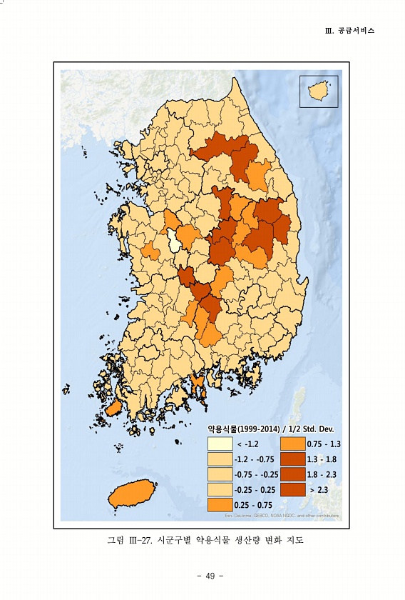 Ⅲ. 공급서비스 49 그림 Ⅲ 27. 시군구별 약용식물 생산량 변화지도