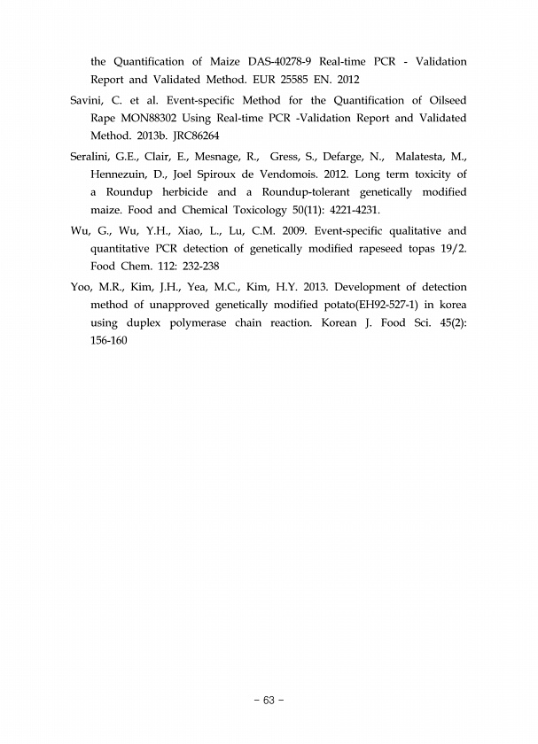 the Quantification of Maize DAS-40278-9 Real-time PCR Validation Report and Validated Method. EUR 25585 EN. 2012 Savini, C. et al. Event-specific Method for the Quantification of Oilseed Rape MON88302 Using Real-time PCR -Validation Report and Validated Method. 2013b. JRC86264 Seralini, G.E., Clair, E., Mesnage, R., Gress, S., Defarge, N., Malatesta, M., Hennezuin, D., Joel Spiroux de Vendomois. 2...
