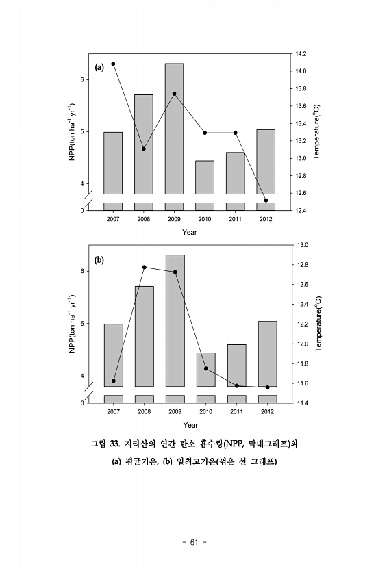 61 Year 2007 2008 2009 2010 2011 2012 NPP ton ha-1 yr-1 6 5 4 0 Temperature oC 12.4 12.6 12.8 13.0 13.2 13.4 13.6 13.8 14.0 14.2 Year 2007 2008 2009 2010 2011 2012 NPP ton ha-1 yr-1 6 5 4 0 Temperature oC 11.4 11.6 11.8 12.0 12.2 12.4 12.6 12.813.0