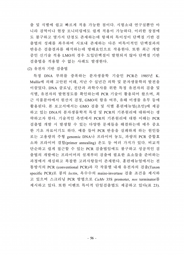 56 LMO 2 DNA PCR 1985 K. Mullis , DNA , , PCR , , GMO , GMO DNA PCR PCR PCR PCR genomic DNA , PCR primer annealing PCR PCR conventional PCR Taxon specific PCR lectin, maize-invertase PCR CaMv 35S promoter, nos terminator 23