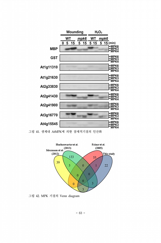 63 그림 42. MPK 기질의 Venn diagram 그림 41. 생체내 AtMPK에 의한 잠재적기질의인산화