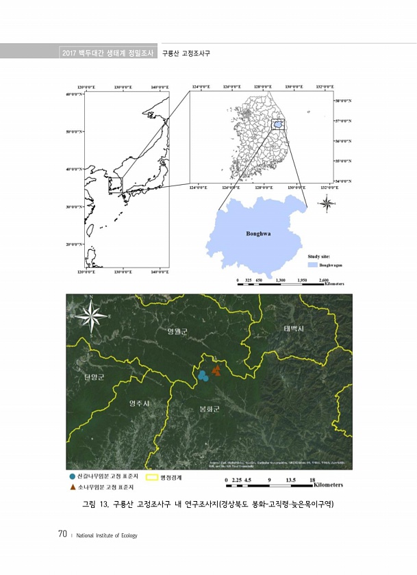 2017 백두대간 생태계 정밀조사 구룡산 고정조사구 70 ? National Institute of Ecology 그림 13. 구룡산 고정조사구 내 연구조사지 경상북도 봉화-고직령·늦은목이구역