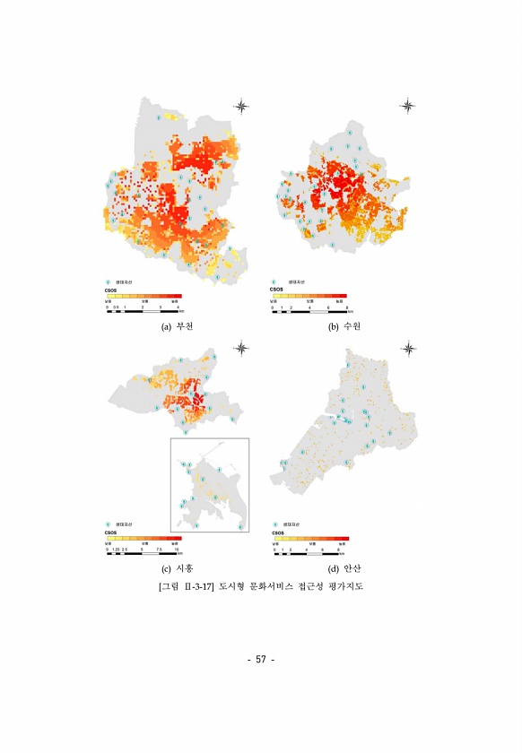 57 a 부천 b 수원 c 시흥 d 안산 [그림 Ⅱ-3-17] 도시형 문화서비스 접근성평가지도