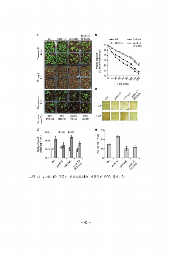 63 그림 41. yuc6- 1D 식물의 건조스트레스 저항성과 ROS억제기능