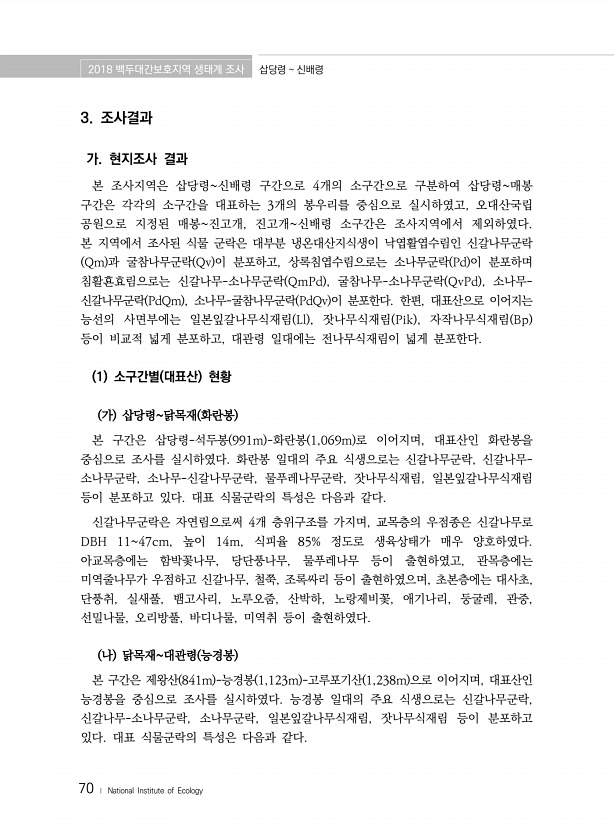 제목 : (2018) 백두대간보호지역 생태계 조사.삽당령~신배령