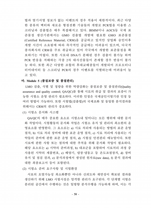 58 PCR IRMM AOCS GMO GMO Certified Reference Material; CRM , CRM DNA PCR 2 PCR Module 5 LMO , Quality assurance and quality control; QA/QC CRM 1 QA/QC a , b , c , d a , b , c , · , d , e raw data , f 2 LMO ,