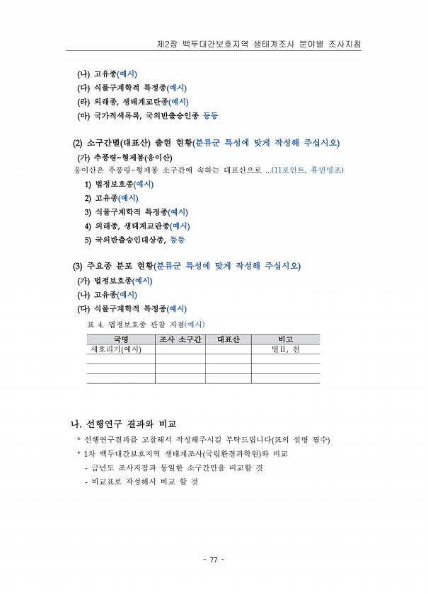 제목 : 백두대간보호지역 생태계 조사 지침서