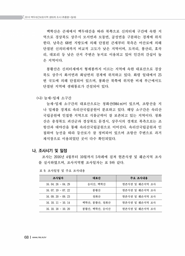 제목 : (2016) 백두대간보호지역 생태계 조사.추풍령~밀재