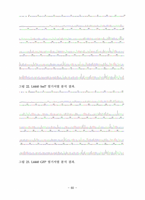 그림 22. L4440 Snf7 염기서열 분석 결과. 그림 23. L4440 GFP 염기서열 분석결과.