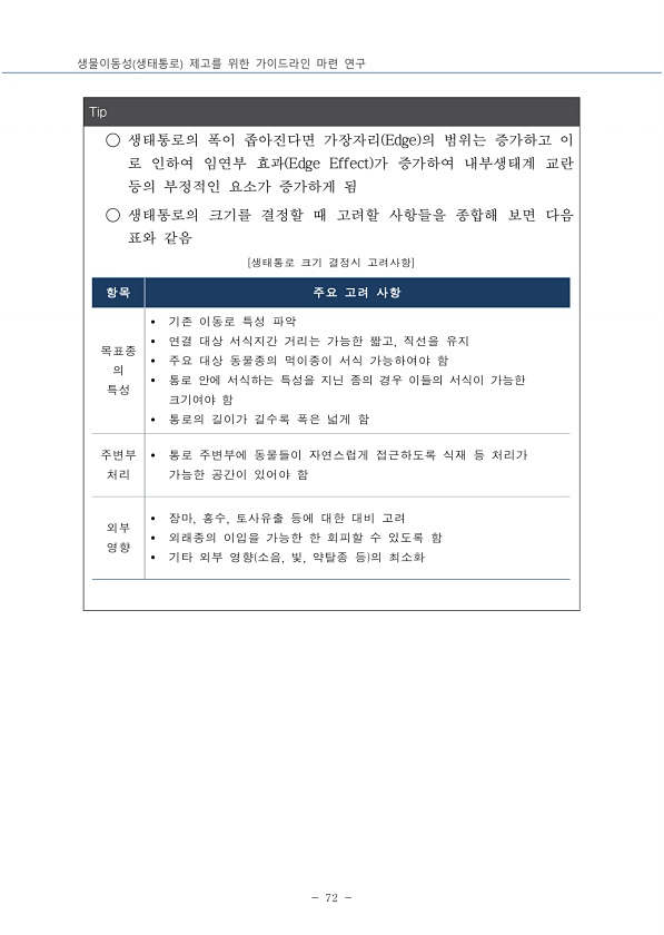 제목 : 생물이동(생태통로) 제고를 위한 가이드라인 마련 연구
