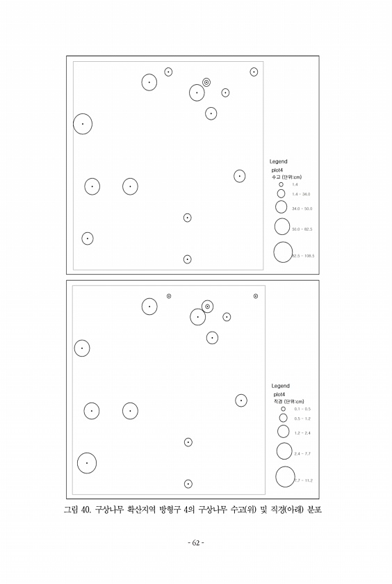 그림 40. 구상나무 확산지역 방형구 4의 구상나무 수고 위 및 직경 아래 분포 62