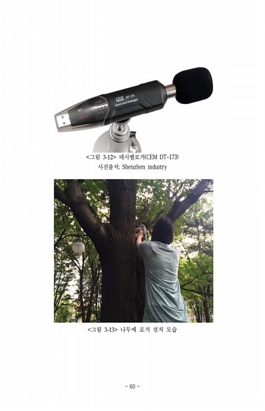 그림 3-12 데시벨로거 사진출처 그림 3-13 나무에 로거 설치 모습 60