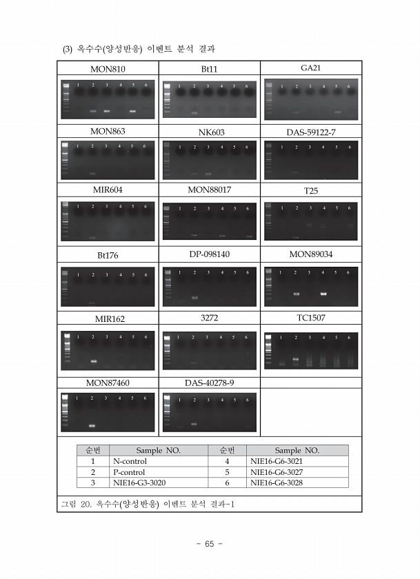 MON810 Bt11 GA21 1 2 3 4 5 6 1 2 3 4 5 6 1 2 3 4 5 6 MON863 NK603 DAS-59122-7 1 2 3 4 5 6 1 2 3 4 5 6 1 2 3 4 5 6 MIR604 MON88017 T25 1 2 3 4 5 6 1 2 3 4 5 6 1 2 3 4 5 6 Bt176 DP-098140 MON89034 1 2 3 4 5 6 1 2 3 4 5 6 1 2 3 4 5 6 MIR162 3272 TC1507 1 2 3 4 5 6 1 2 3 4 5 6 1 2 3 4 5 6 MON87460 DAS-40278-9 1 2 3 4 5 6 1 2 3 4 5 6 순번 Sample NO. 순번 Sample NO. 1 N-control 4 NIE16-G6-3021 2 P-control 5...