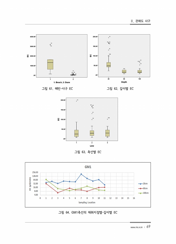 Ⅱ. 관매도 사구 www.nie.re.kr ? 69 그림 61. 해빈-사구 EC 그림 62. 깊이별 EC 그림 63. 측선별 EC 그림 64. GM1측선의 채취지점별-깊이별EC