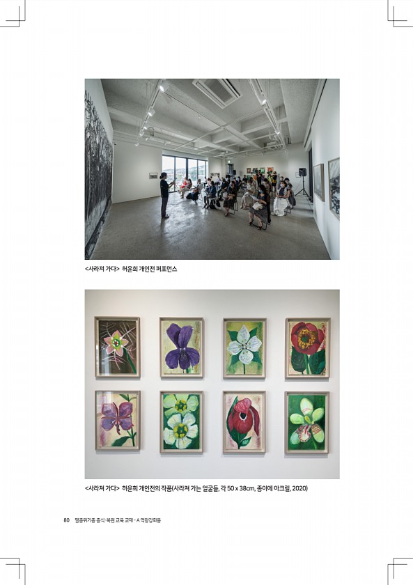 80 멸종위기종 증식·복원 교육 교재 A 역량강화용 사라져 가다 허윤희 개인전 퍼포먼스 사라져 가다 허윤희 개인전의 작품 사라져 가는 얼굴들, 각 50 x 38cm, 종이에 아크릴, 2020