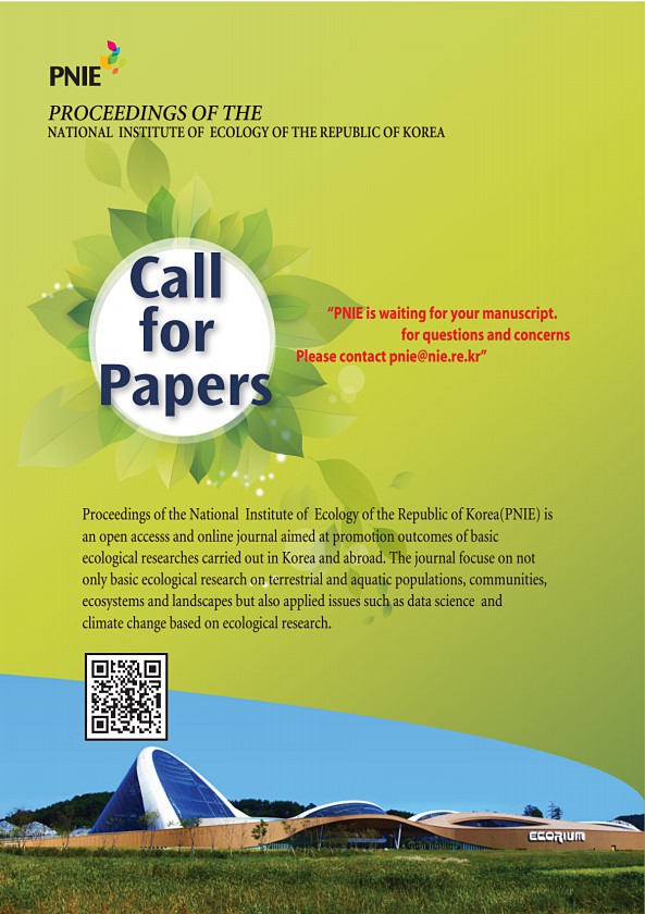 Call for Papers NATIONAL INSTITUTE OF ECOLOGY OF THE REPUBLIC OF KOREA PROCEEDINGS OF THE Proceedings of the National Institute of Ecology of the Republic of Korea PNIE is an open accesss and online journal aimed at promotion outcomes of basic ecological researches carried out in Korea and abroad. The journal focuse on not only basic ecological research on terrestrial and aquatic populations, comm...
