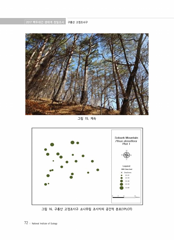 2017 백두대간 생태계 정밀조사 구룡산 고정조사구 72 ? National Institute of Ecology 그림 15. 계속 그림 16. 구룡산 고정조사구 소나무림 조사지의 공간적 분포 1PLOT