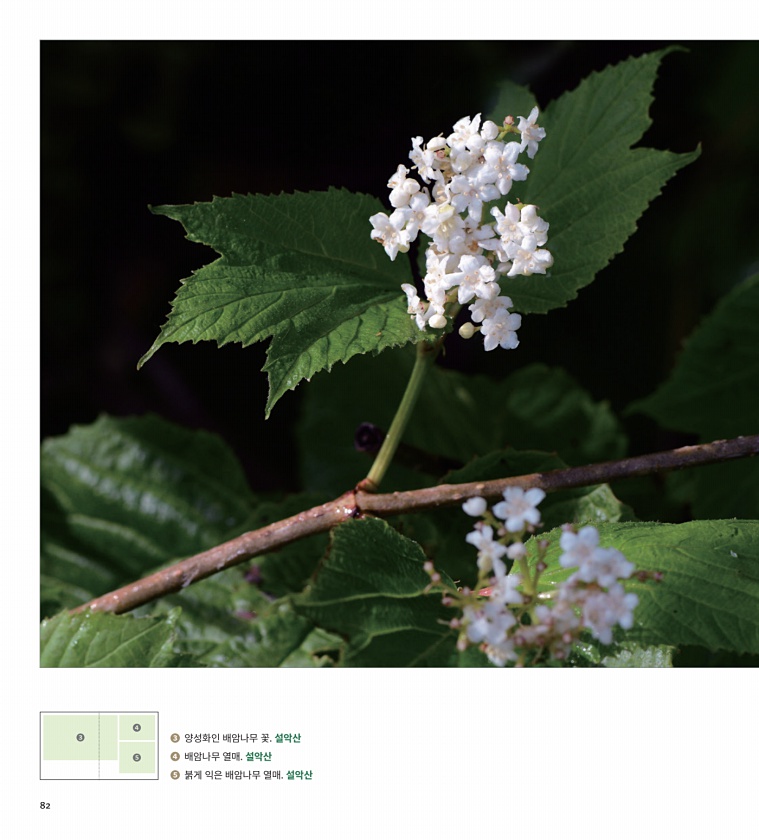 ? ? ? ? 양성화인 배암나무 꽃. 설악산 ? 배암나무 열매. 설악산 ? 붉게 익은 배암나무 열매. 설악산82
