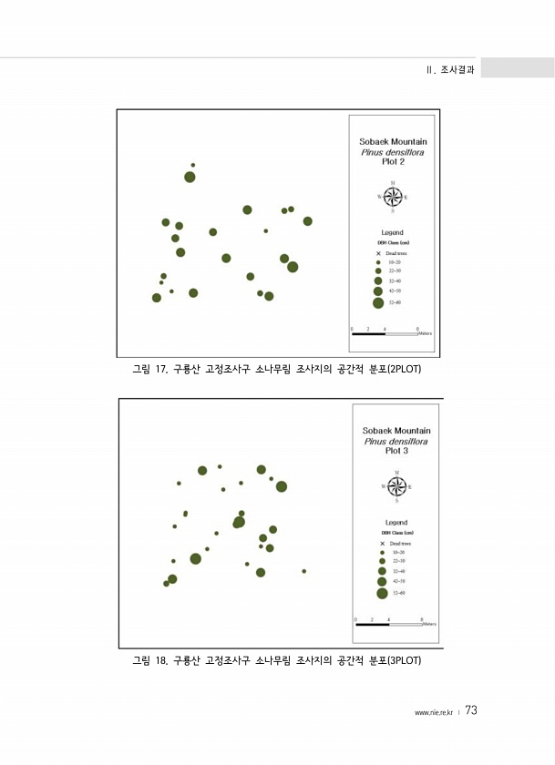 Ⅱ. 조사결과 www.nie.re.kr ? 73 그림 17. 구룡산 고정조사구 소나무림 조사지의 공간적 분포 2PLOT 그림 18. 구룡산 고정조사구 소나무림 조사지의 공간적 분포 3PLOT