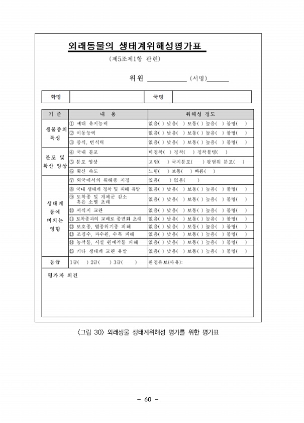 60 그림 30 외래생물 생태계위해성 평가를 위한평가표