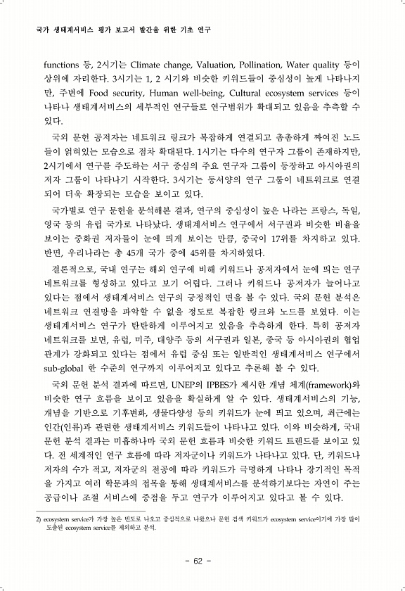 제목 : 국가 생태계서비스 평가 : 국가 생태계서비스 평가 보고서 발간을 위한 기초 연구