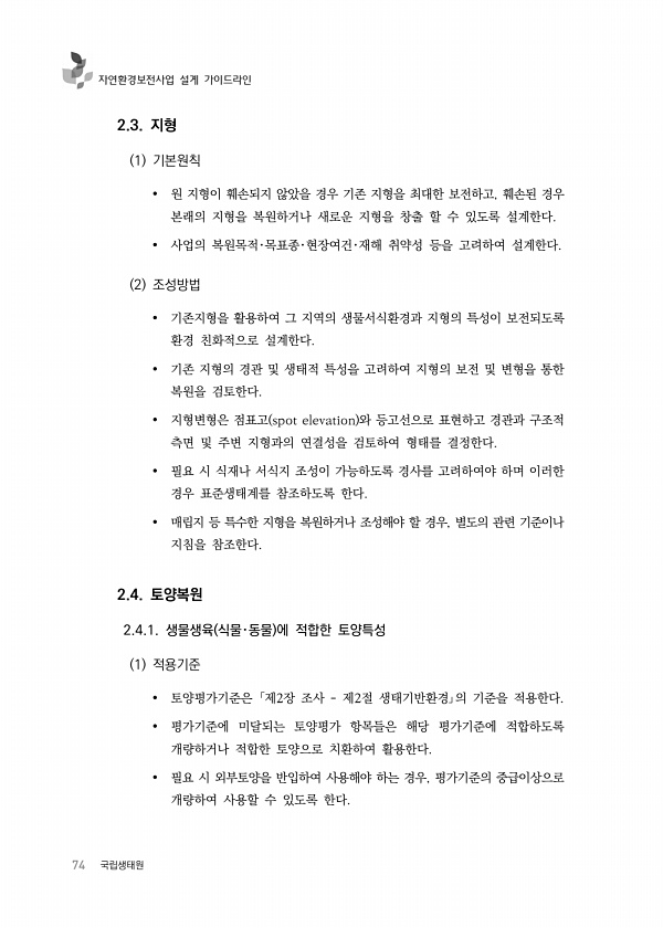 제목 : 자연환경보전사업 설계 가이드라인