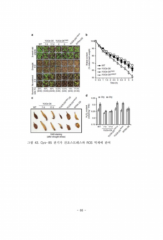 66 그림 43. Cys- 85 잔기가 건조스트레스와 ROS 억제에관여
