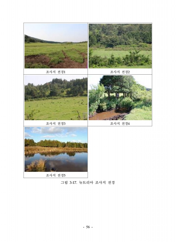 56 조사지 전경1 조사지 전경2 조사지 전경3 조사지 전경4 조사지 전경5 그림 3-17. 뉴트리아 조사지전경