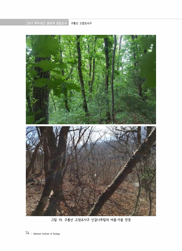 2017 백두대간 생태계 정밀조사 구룡산 고정조사구 74 ? National Institute of Ecology 그림 19. 구룡산 고정조사구 신갈나무림의 여름·가을전경