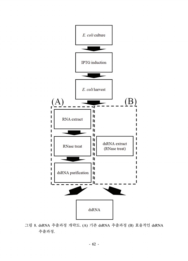 62 그림 8. dsRNA 추출과정 개략도. A 기존 dsRNA 추출과정 B 효율적인 dsRNA추출과정.