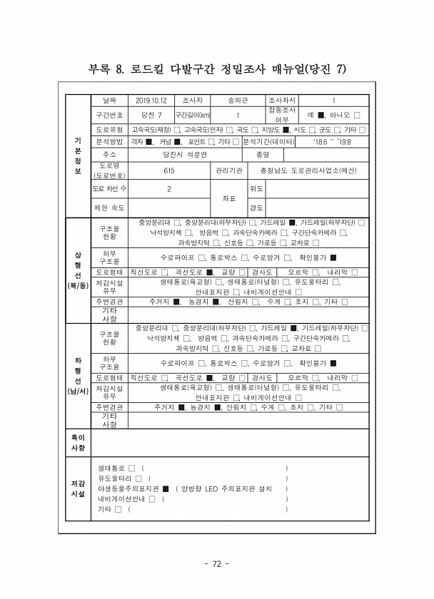 제목 : (2019) 로드킬 다발구간 정밀조사