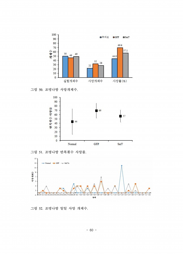 60 그림 50. 조명나방 사망개체수. 그림 51. 조명나방 반복횟수 사망률. 그림 52. 조명나방 일일 사망개체수.