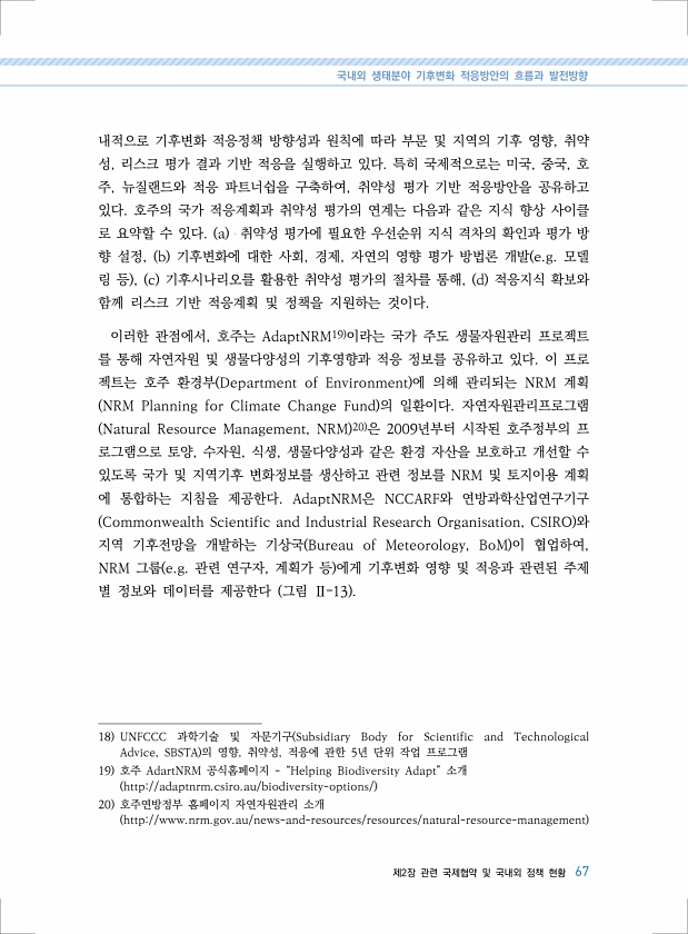제목 : 생태분야 기후변화 적응 사례집 : 국내외 생태분야 기후변화 적응방안의 흐름과 발전방향