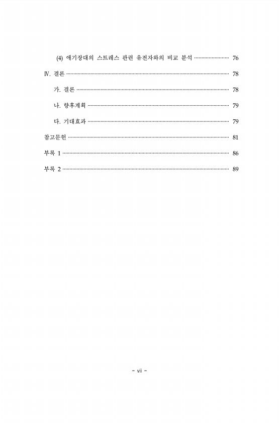 vii 4 애기장대의 스트레스 관련 유전자와의 비교 분석 ························ 76 Ⅳ. 결론 ··················································································································· 78 가. 결론 ············································································································ 78 나. 향후계획 ·························································································...