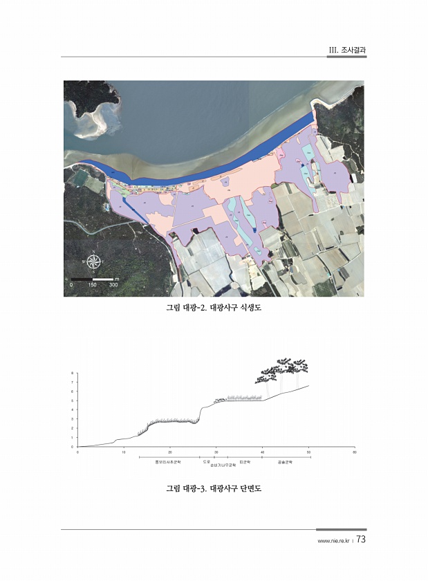 III. 조사결과 www.nie.re.kr ? 73 그림 대광-2. 대광사구 식생도 그림 대광-3. 대광사구단면도
